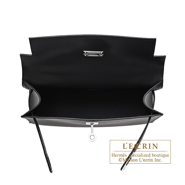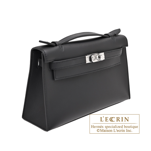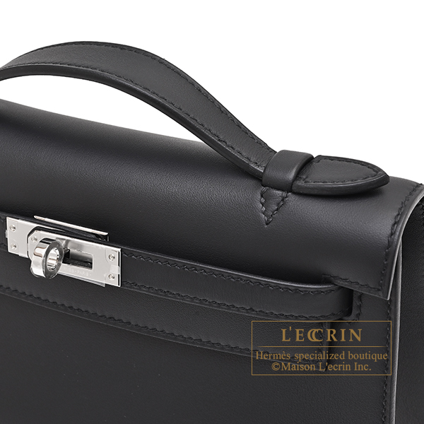 Hermes Kelly pochette Black Swift leather Silver hardware