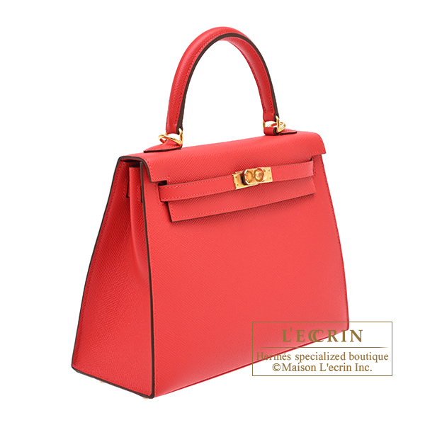 Hermes Kelly bag 25 Sellier Rouge radieux Epsom leather Gold hardware