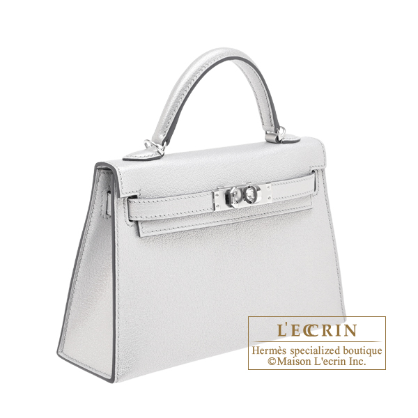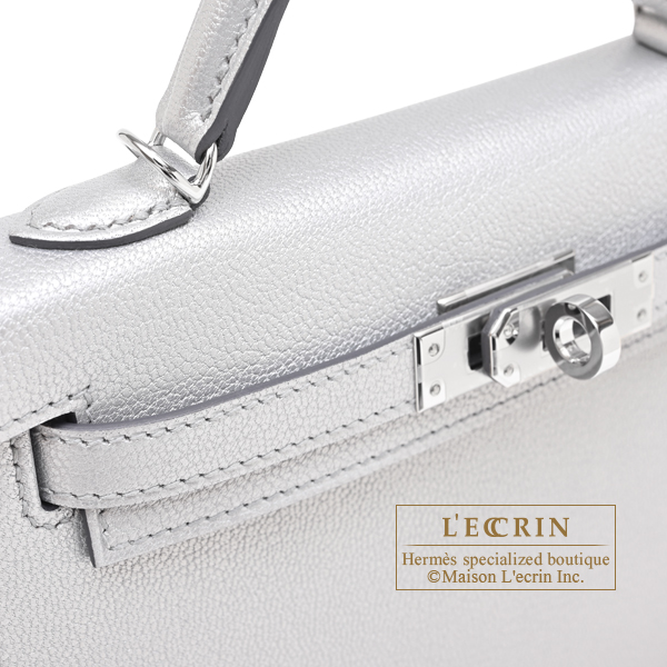 Hermes Kelly bag mini Sellier Argent Chevre chamkila goatskin Silver hardware