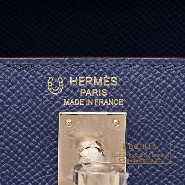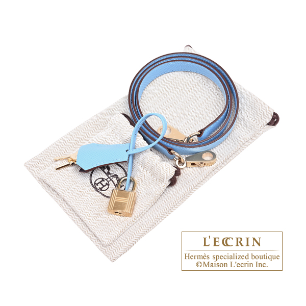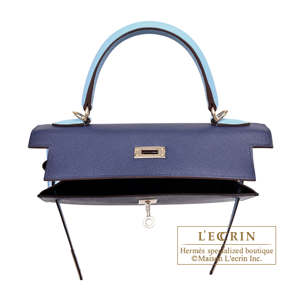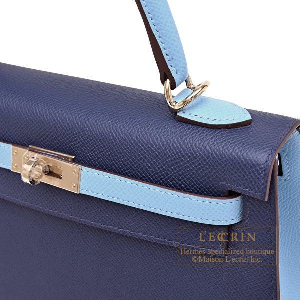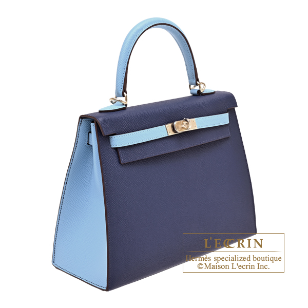 Hermes Personal Kelly bag 25 Sellier Blue saphir/Celeste Epsom leather Champagne gold hardware