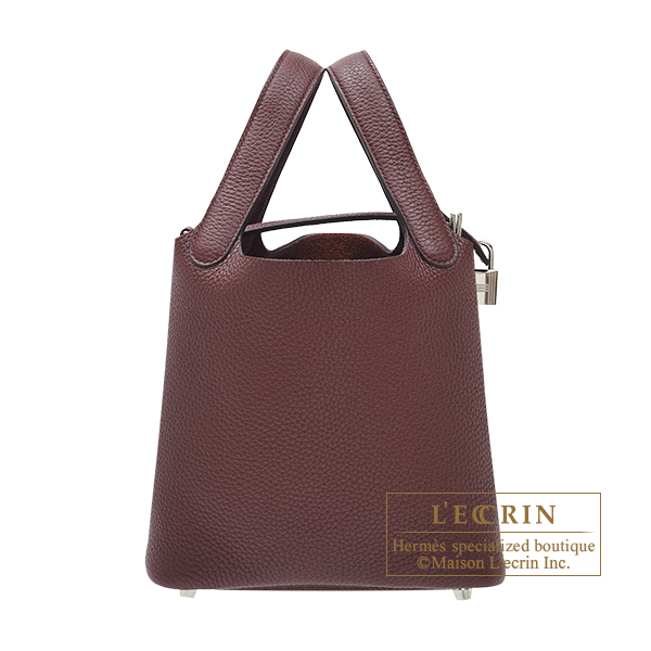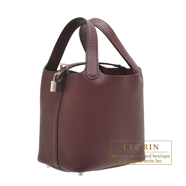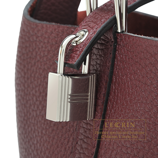 Hermes Picotin Lock bag 18/PM Bordeaux Clemence leather Silver hardware