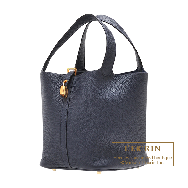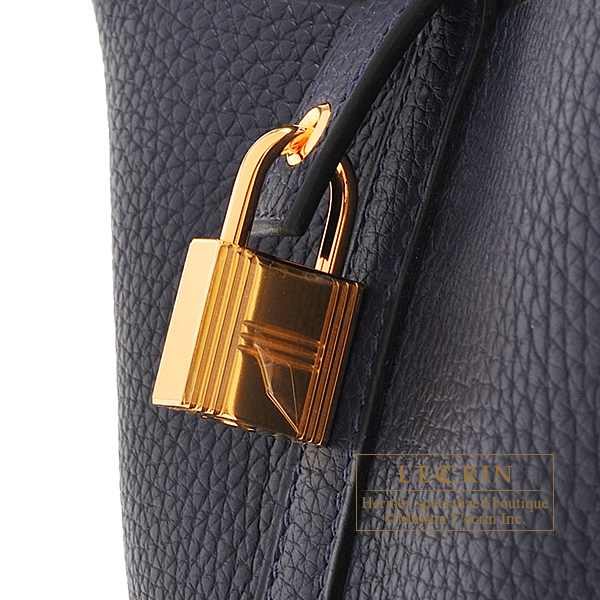 Hermes Picotin Lock bag 22/MM Blue nuit Clemence leather Gold hardware