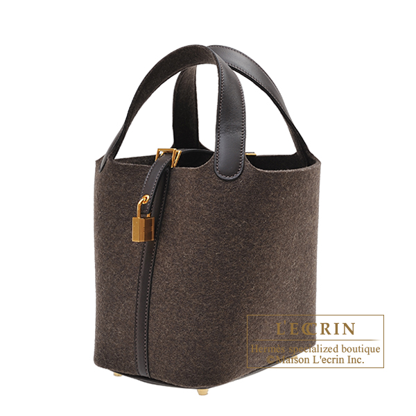 Hermes Picotin Lock bag 18/PM Ebene/Ebene Felt/ Swift leather Gold hardware