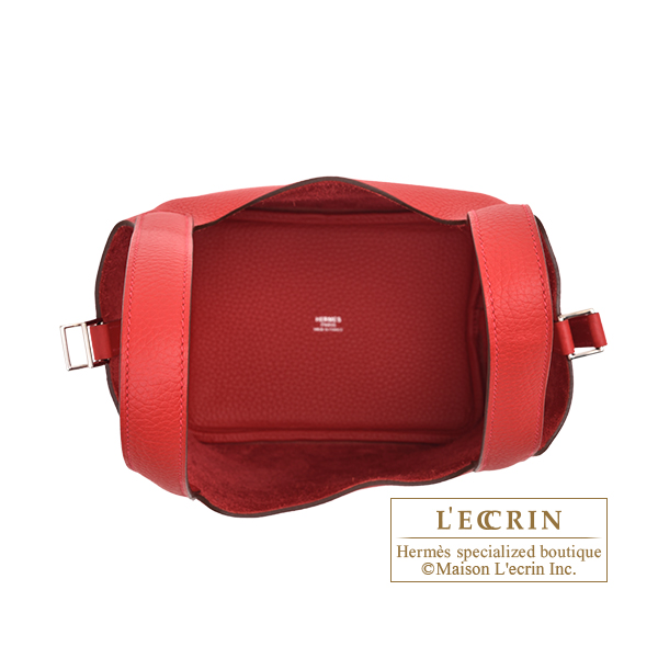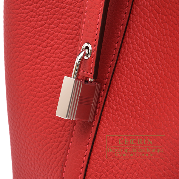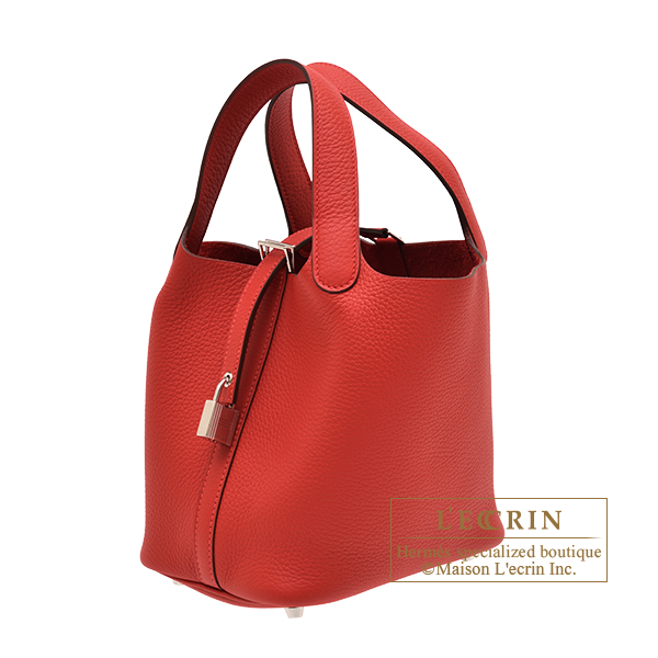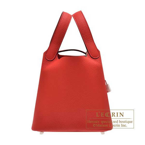 Hermes Picotin Lock bag 18/PM Vermillon Clemence leather Silver hardware