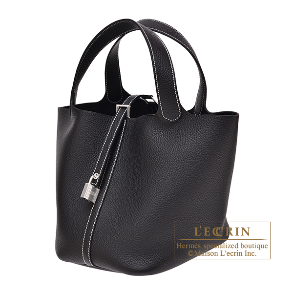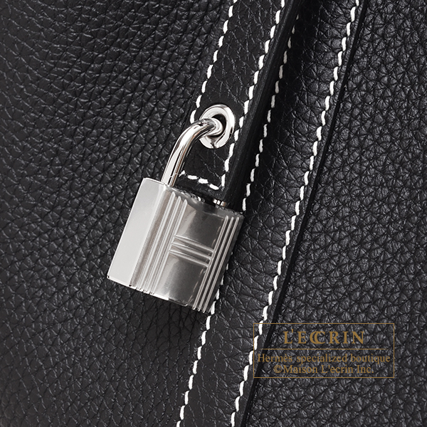 Hermes Picotin Lock Stitch bag 22/MM Black Clemence leather Silver hardware