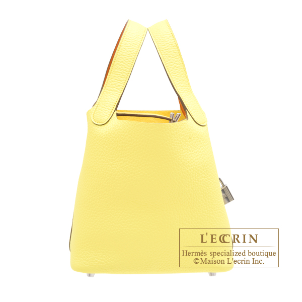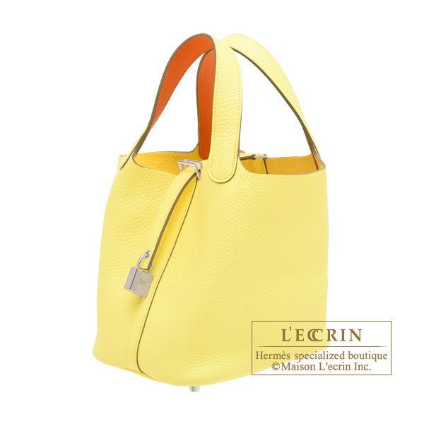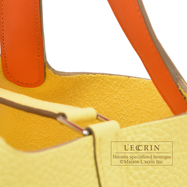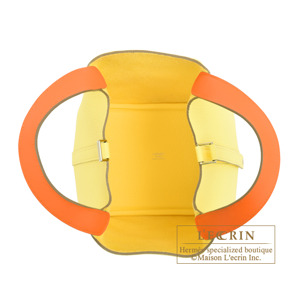Hermes Picotin Lock Eclat bag 18/PM Limoncello/ Orange minium Clemence leather/ Swift leather Silver hardware