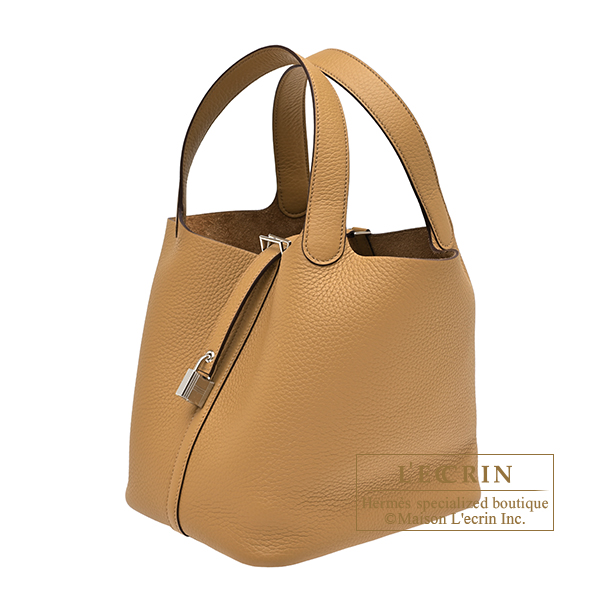 Hermes Picotin Lock bag 22/MM Biscuit Clemence leather Silver hardware