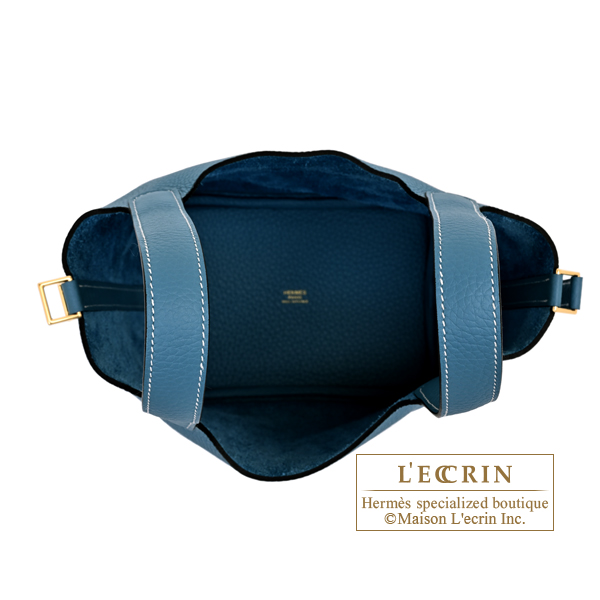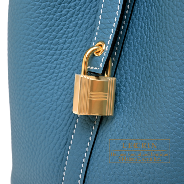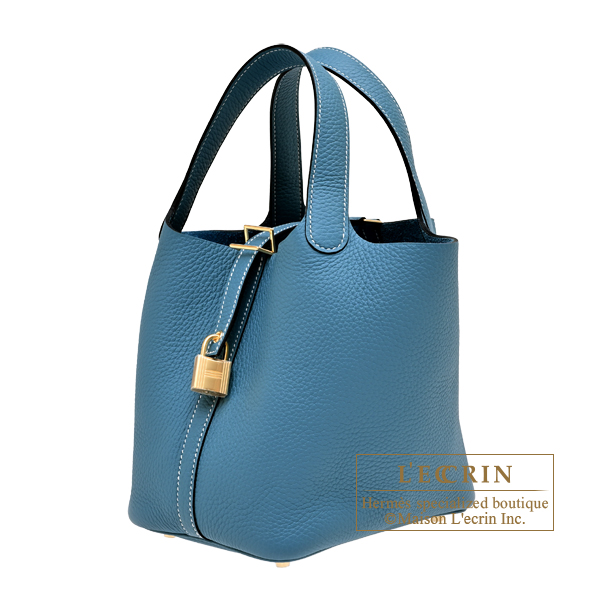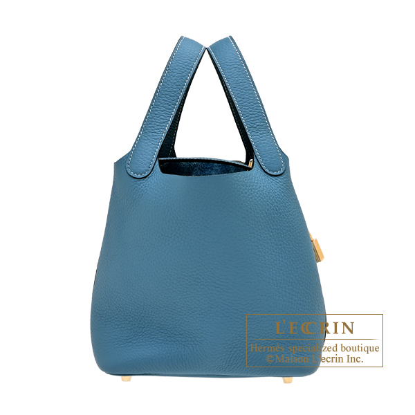 Hermes Picotin Lock bag 18/PM New blue jean Clemence leather Gold hardware