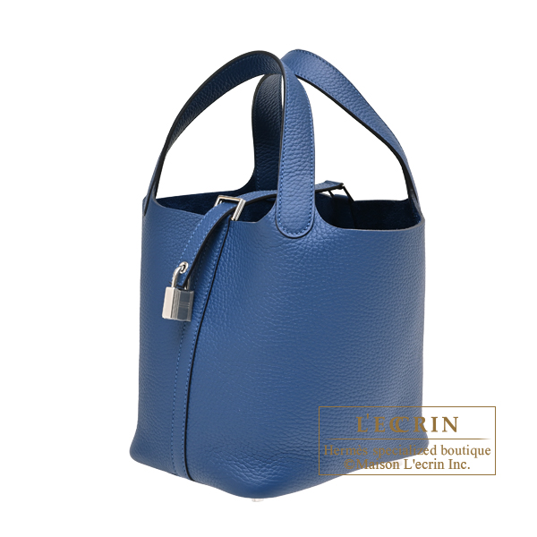 Hermes Picotin Lock bag 18/PM Blue tie Clemence leather Silver hardware