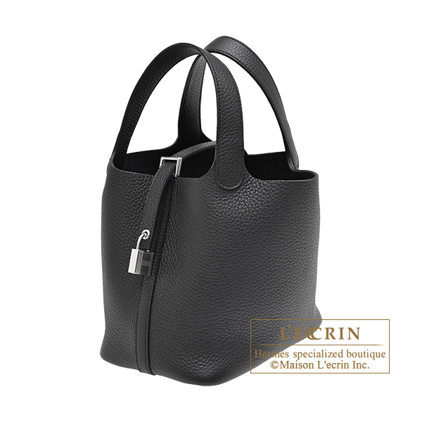 Hermes Picotin Lock bag 18/PM Black Clemence leather Silver hardware
