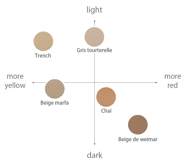 From left to right: Etoupe grey (Togo leather) / Beige de weimar (Clemence leather)
